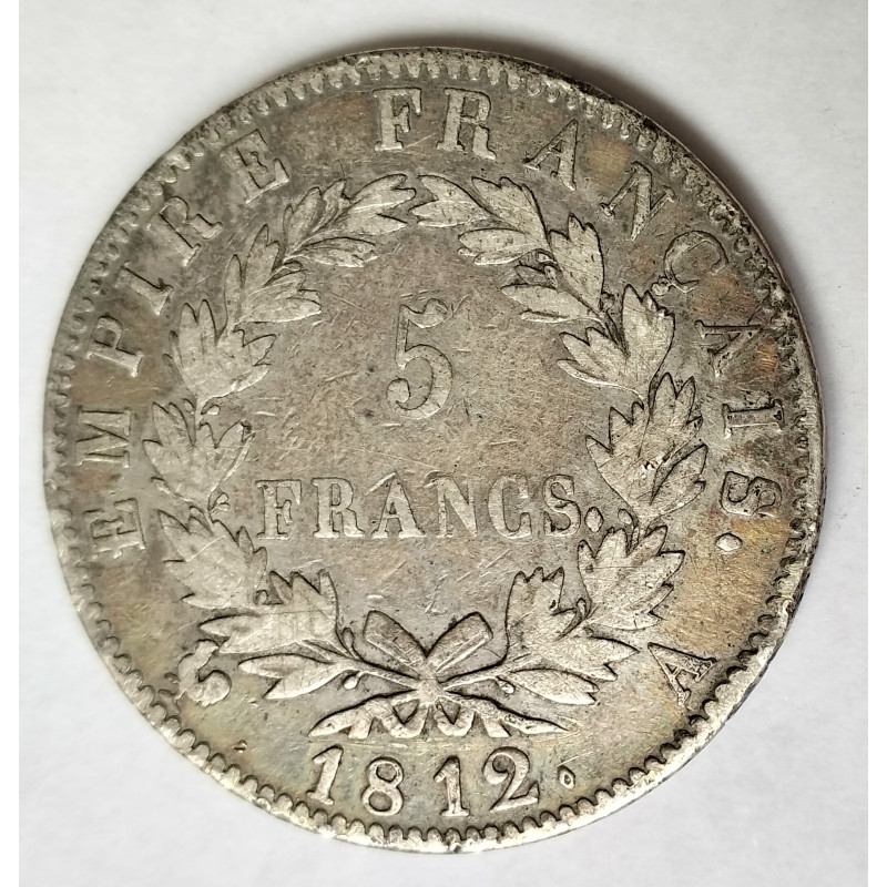 Moneda de plata de Francia de 5 Francos de Napoleón I, ceca A de París.