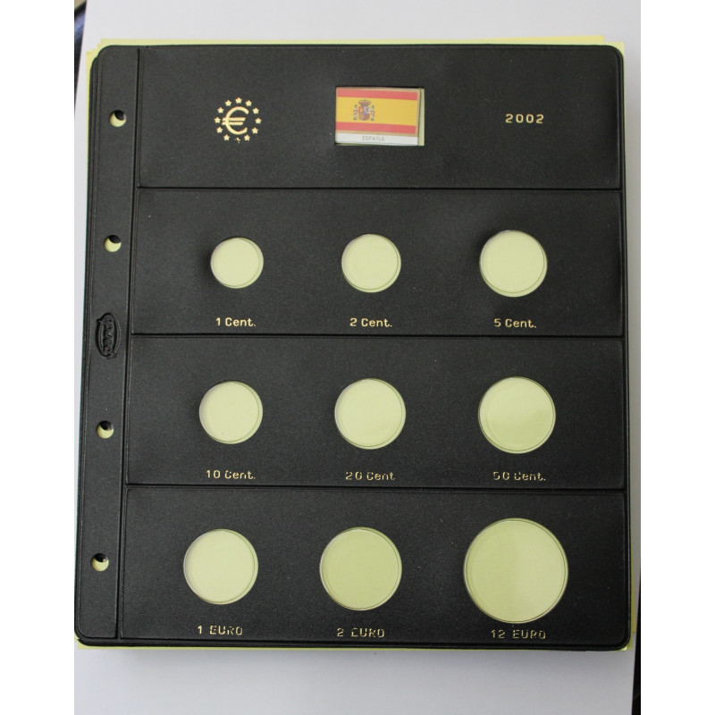 Con espacios para colocar todas las monedas al completo, incluida la moneda de 12 euros de plata de la Presidencia de la Unión Europea 2002