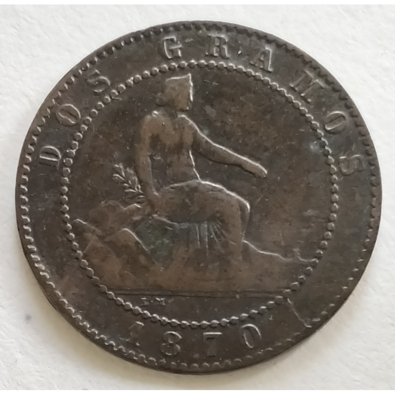 MONEDA DE 2 GRAMOS DE COBRE DE 1870.
