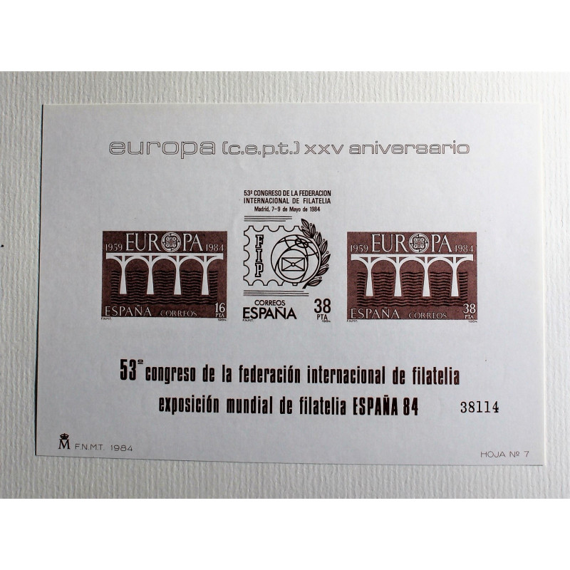 PRUEBA EXFILNA EXPOSICIÓN MUNDIAL DE FILATELIA 1984.