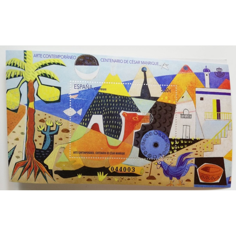 FILOSTUCHE HEFAR NEGRO R 98 PARA LA HOJA BLOQUE DE ARTE CONTEMPORÁNEO DEL CENTENARIO DE CESAR MANRIQUE 2019.