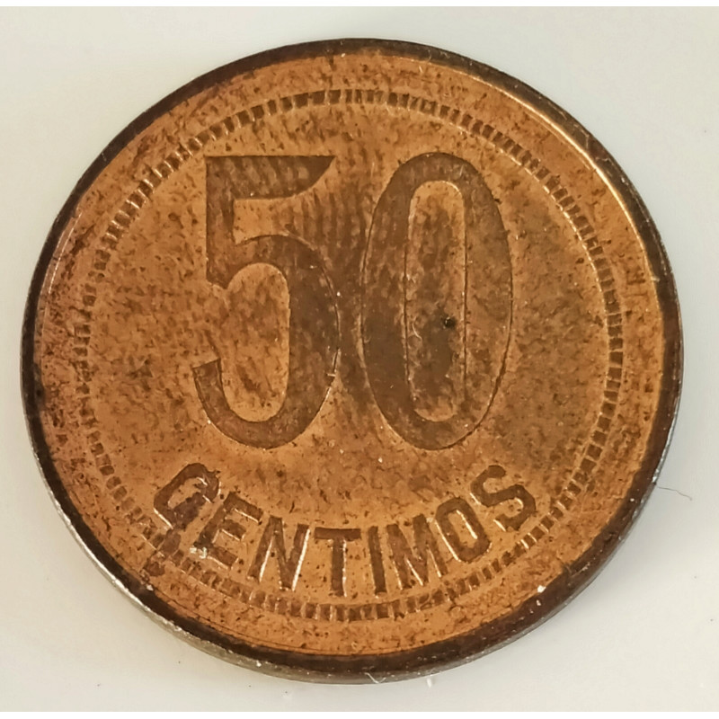 Moneda de cobre de 50 céntimos de la II República del año 1937.