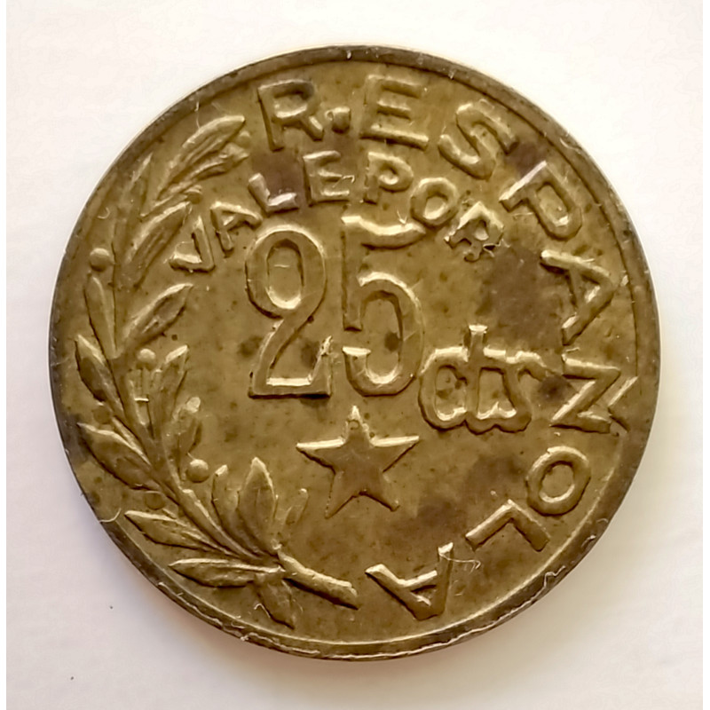 Moneda de latón de 25 céntimos de los Consejos municipales de Menorca año 1937.