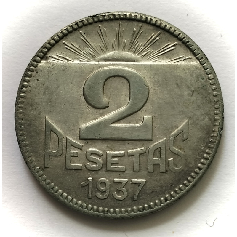 Moneda de la República de 2 pesetas de Asturias y León de cuproníquel 1937.