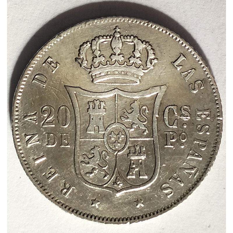 Moneda de Isabel II de plata de 20 Centavos de peso Manilla