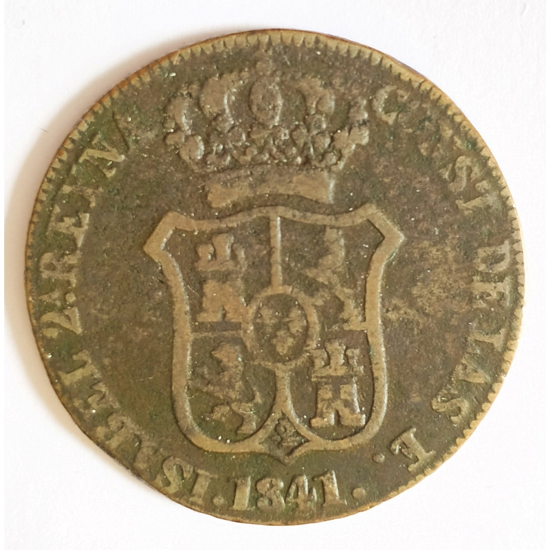 Moneda de cobre de 3 cuartos de Isabel II de Cataluña 1841