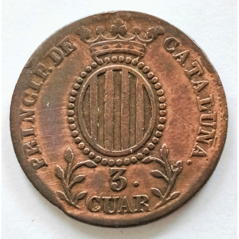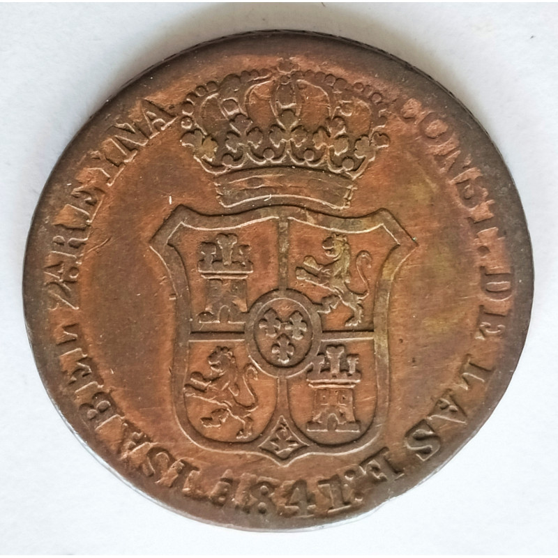 Moneda de cobre de 3 cuartos de Isabel II de Cataluña 1841