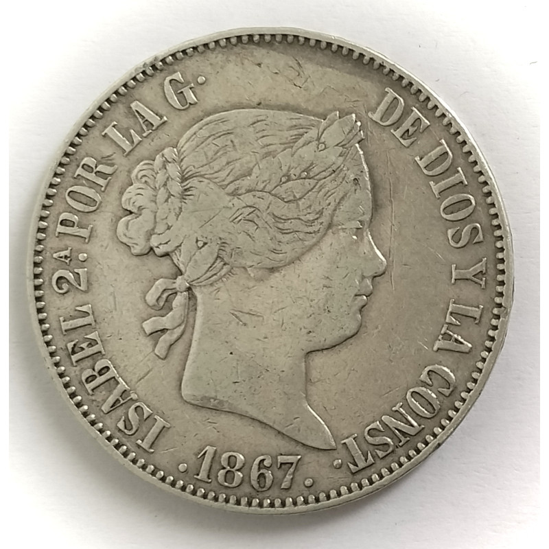 Moneda de plata de 1 escudo de Isabel II de 1867