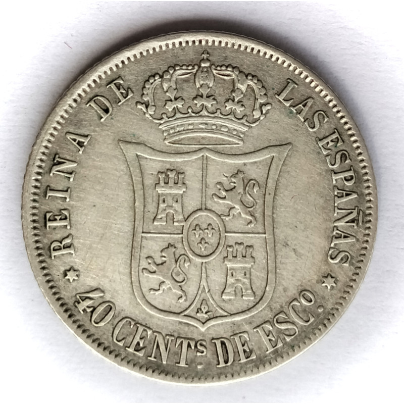 Moneda de plata de 40 céntimos de escudo de Isabel II de Madrid de 1866