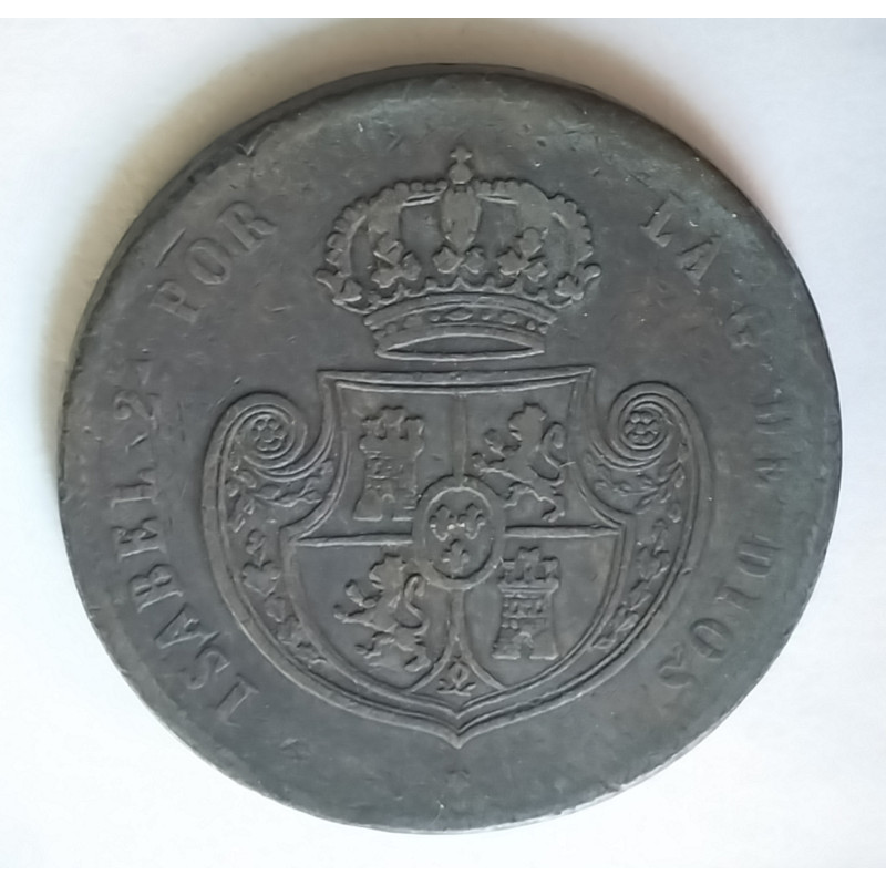 Moneda de 1/2 Real de Isabel II de cobre de 1850.