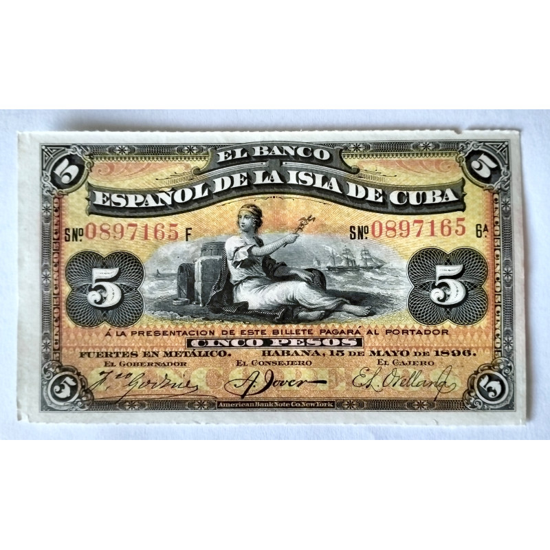 Billete de 5 pesos de la Isla de Cuba del 15 de mayo de 1896