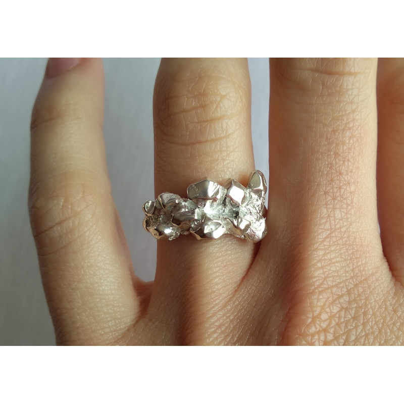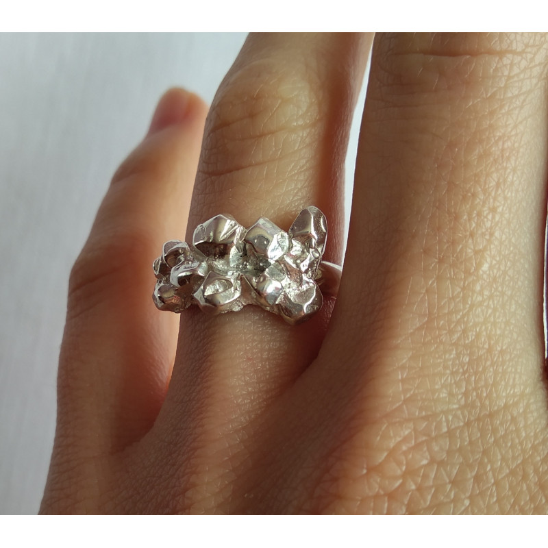 Anillo GEMAS TALLADAS en plata maciza de primera ley. Talla 14. Puede adquirirse en otras tallas. Súper cómodo y elegante. Válido en dos posiciones.