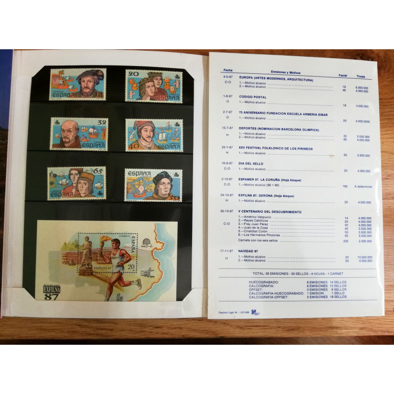AÑO COMPLETO CON TODOS LOS SELLOS,CARNETS Y HOJAS BLOQUE EN NUEVO DEL AÑO 1987