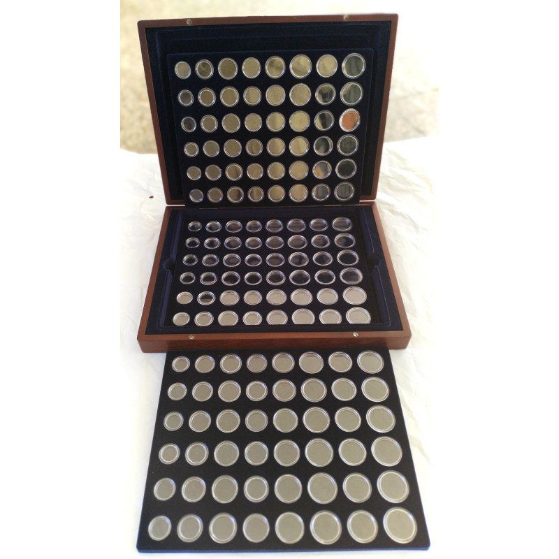 Maletín de madera 265 x 345 con 3 bandejas para las 18 series de euro con cápsulas
