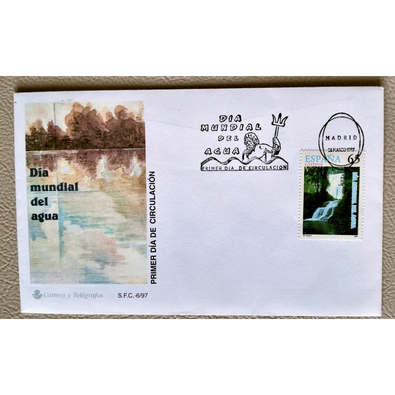 Matasello primer día de circulación del Día mundial del agua Madrid año 1997.