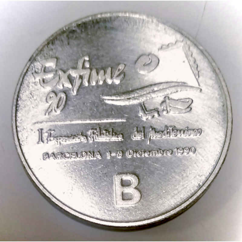 Medalla de la exposición nacional de Exfime con el Palacio de Sant Jordi.