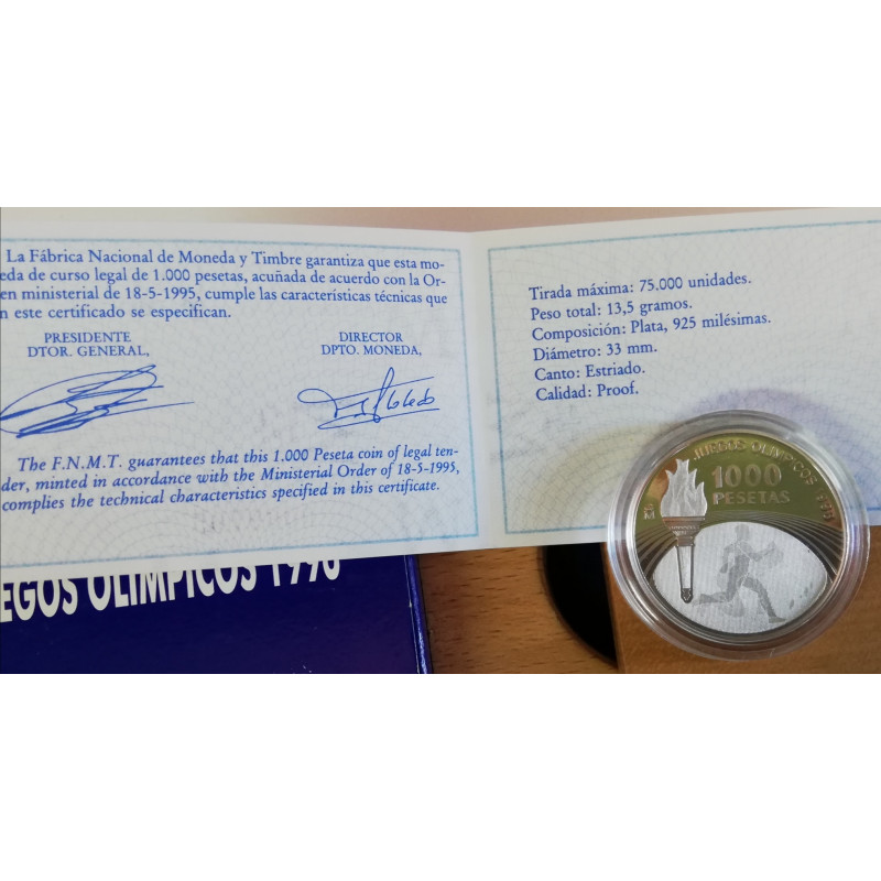 MONEDA DE PLATA DE 1.000 PTS DE LA ANTORCHA OLIMPIICA DEL AÑO 1996