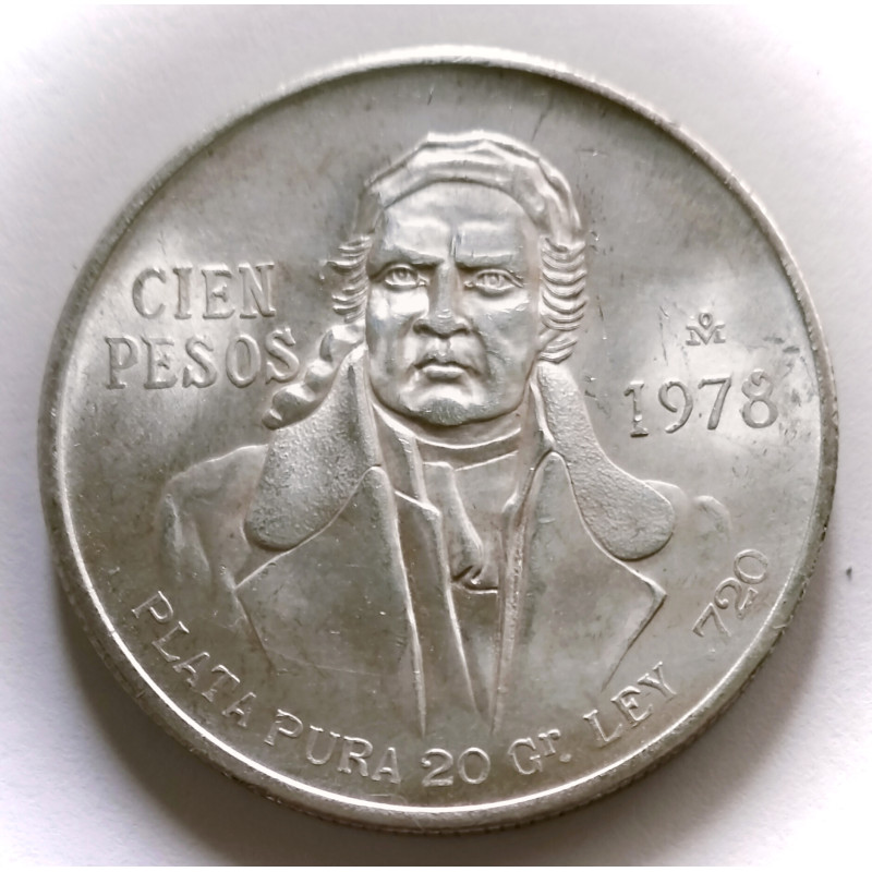 Moneda de 100 pesos de plata de México 1978.