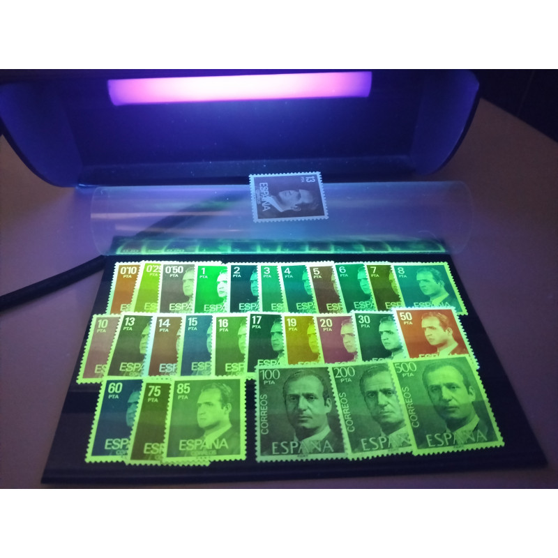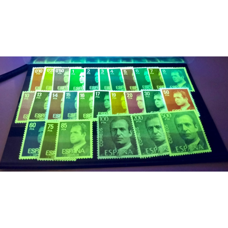 Serie de 27 valores en nuevo de la básica del Rey en papel fosforescente.