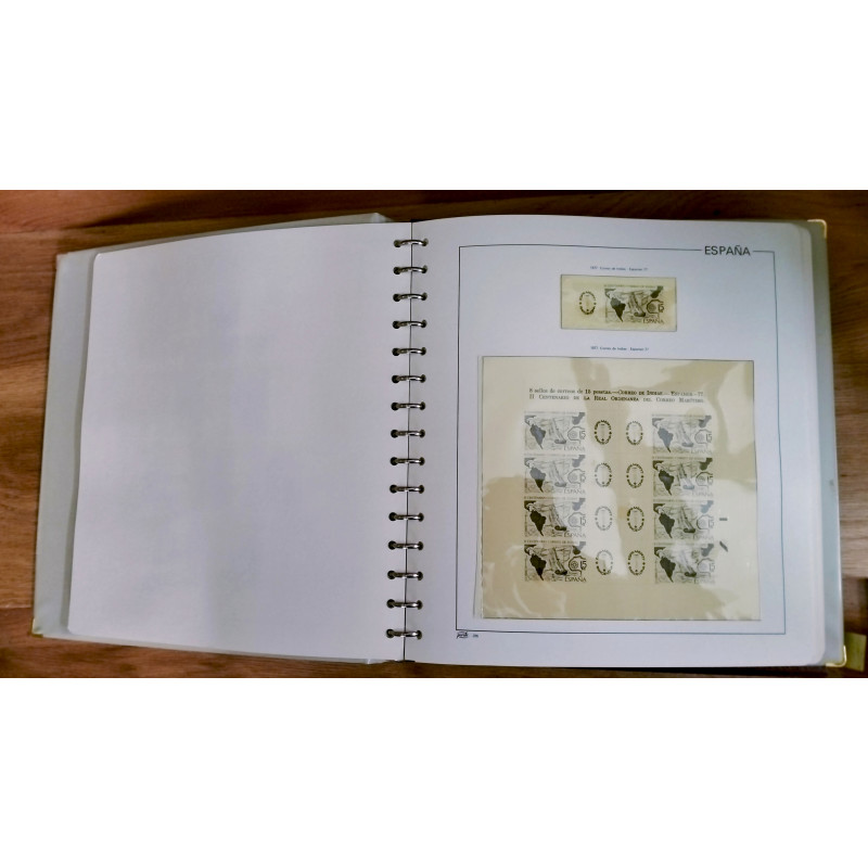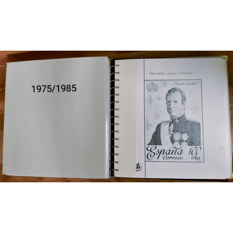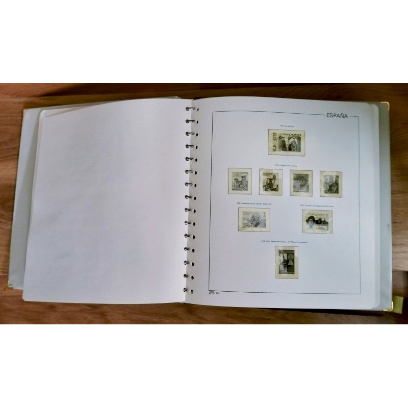 Álbum Pardo tomo V con cajetín y suplementos filatélicos para colocar los sellos de los años comprendidos entre 1975 y 1985.