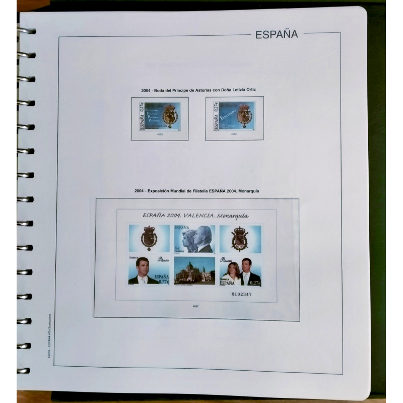 Oferta álbum Edifil Verde con los suplementos de los años 2004 y 2005 montados con estuches transparentes.
