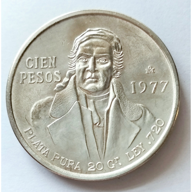 Moneda de Estados Unidos Mejicanos de 100 pesos de 20 gramos de plata de ley 720.