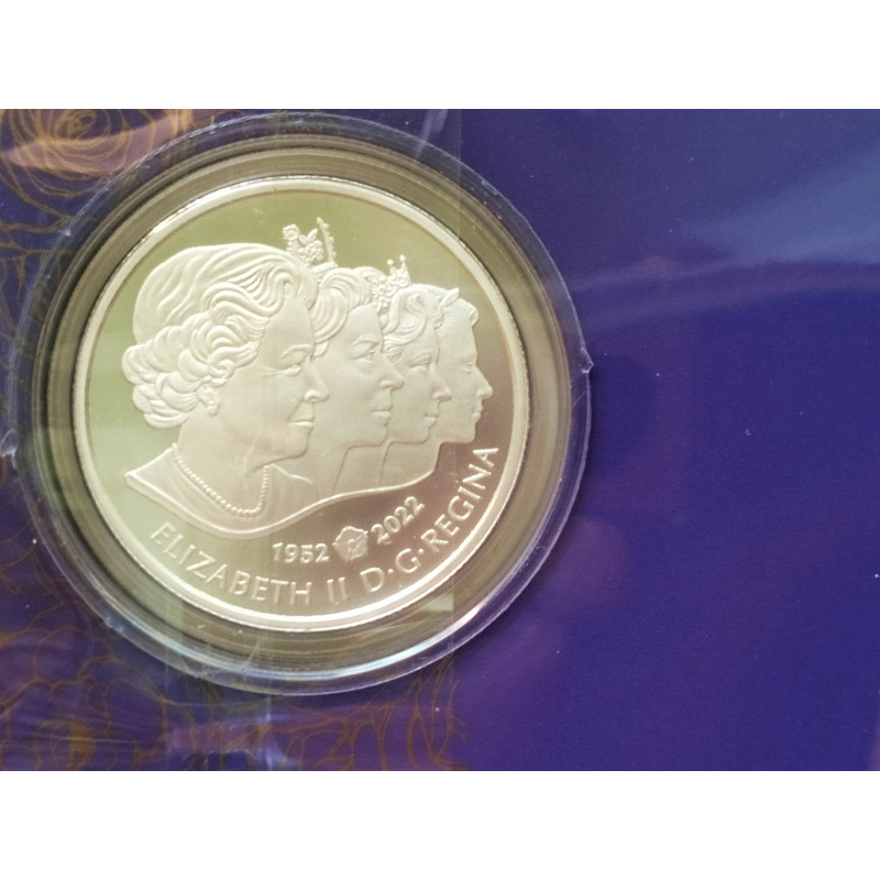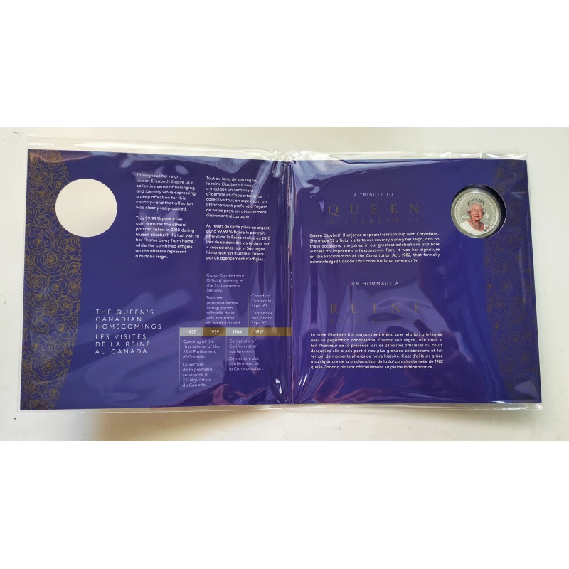 Cartera oficial de Canadá con la moneda de 5 dólares de la Reina Elisabeth ( por la proclamación del rey Carlos III de Inglaterra.)