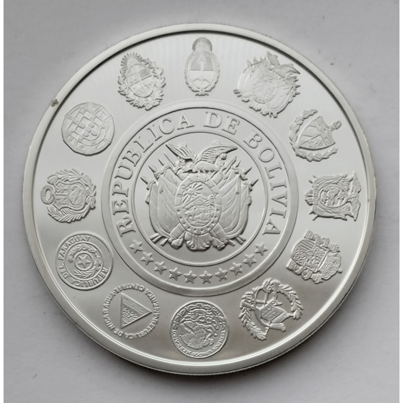 Moneda de plata de la serie iberoamericana de danzas y trajes regionales de Bolivia.