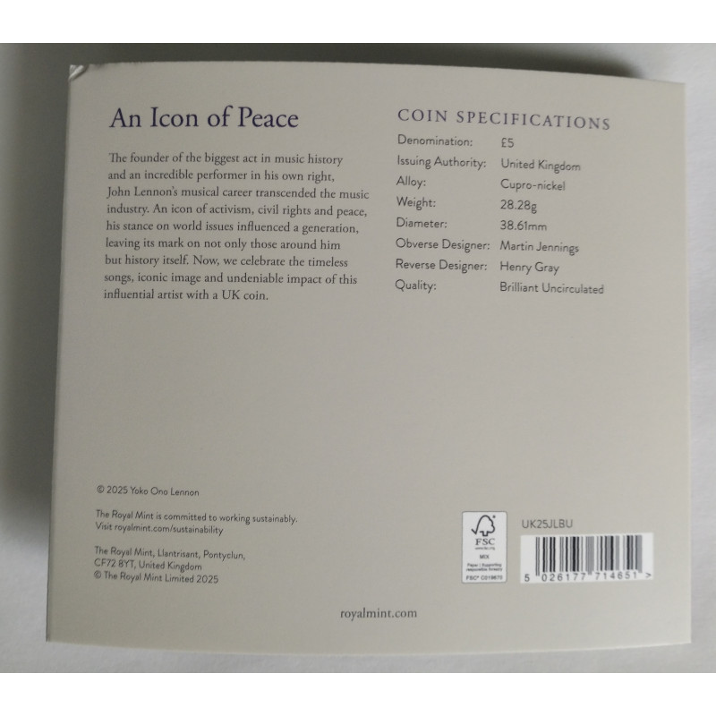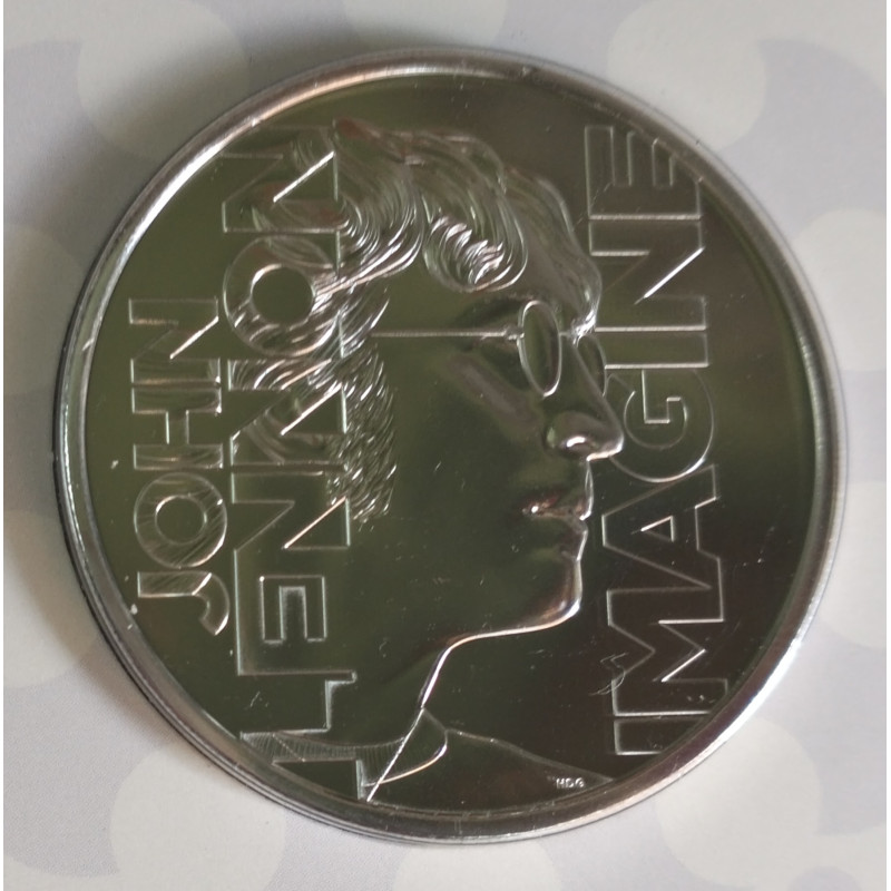Moneda de 5 pound Inglaterra de John Lennon,icono de la Paz.