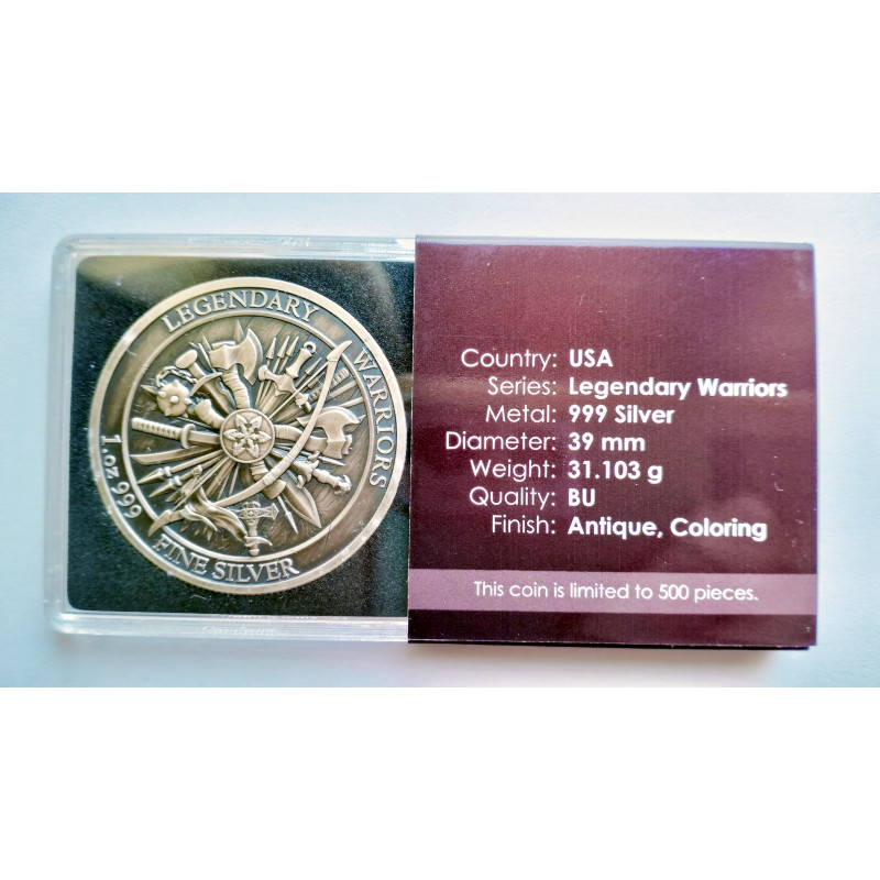 Moneda de 1 onza de plata a color de Juana de arco, serie de personajes legendarios.