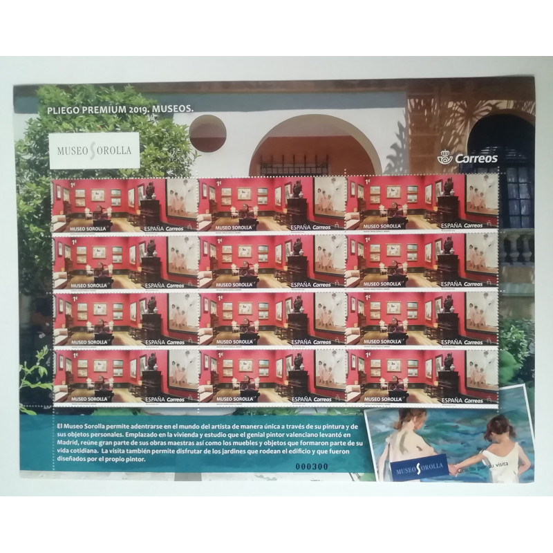 PERTENECIENTE A LA SERIE DE 3 PLIEGOS PREMIUM DE 12 VALORES CADA UNO DE LOS MUSEOS ESPAÑOLES 2019 DEL PRADO,MUSEO SOROLLA Y MUSEO DE BELLAS ARTES DE BILBAO 2019.
