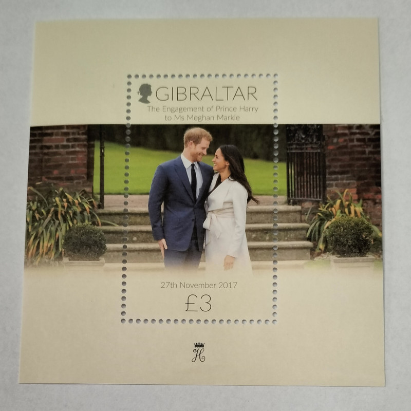 Sello en hoja bloque de la boda del príncipe Harry y Meghan Markle el 27 de noviembre del 2017.