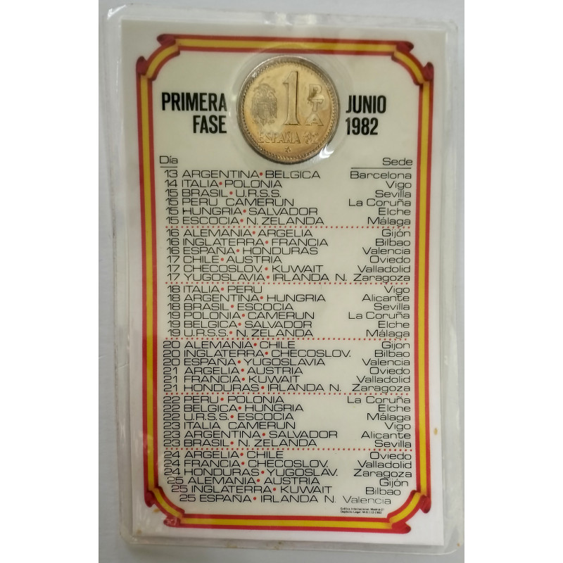 Moneda de 1 peseta oficial en coincar del calendario mundial de fútbol de 1982