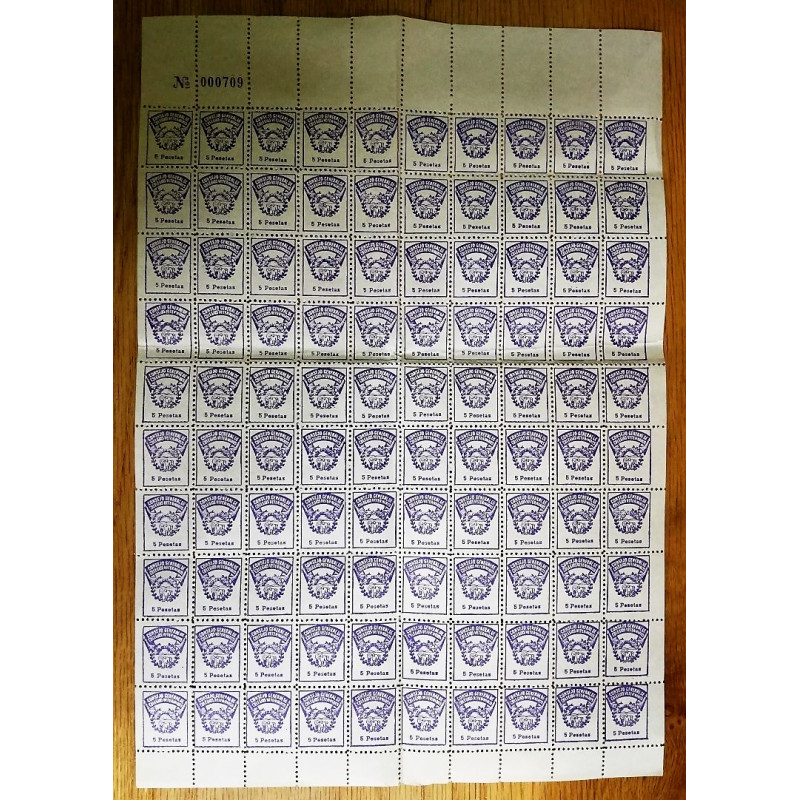 PLIEGO DE 100 SELLOS -PÓLIZAS DE 4 PESETAS CADA UNO.