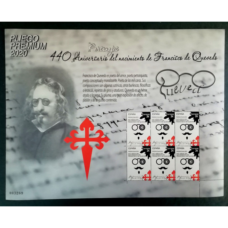 PLIEGO PREMIUM DEL 440 ANIVERSARIO DEL NACIMIENTO DE QUEVEDO.