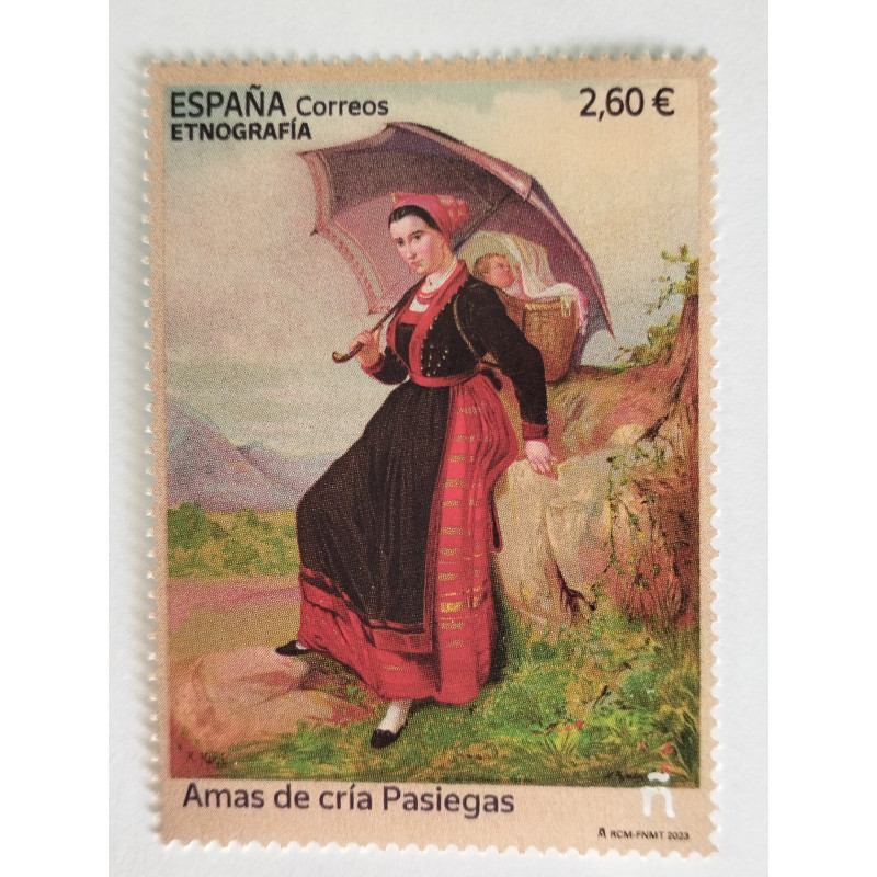 Serie: "Etnografía" con un sello de correo dedicado a las Amas de cría Pasiegas, del día 28 de julio de 2023.