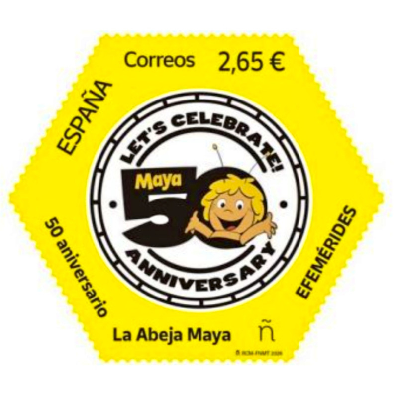 Efemérides: Sello del 50 aniversario de La abeja Maya de dibujos animados año 2026.