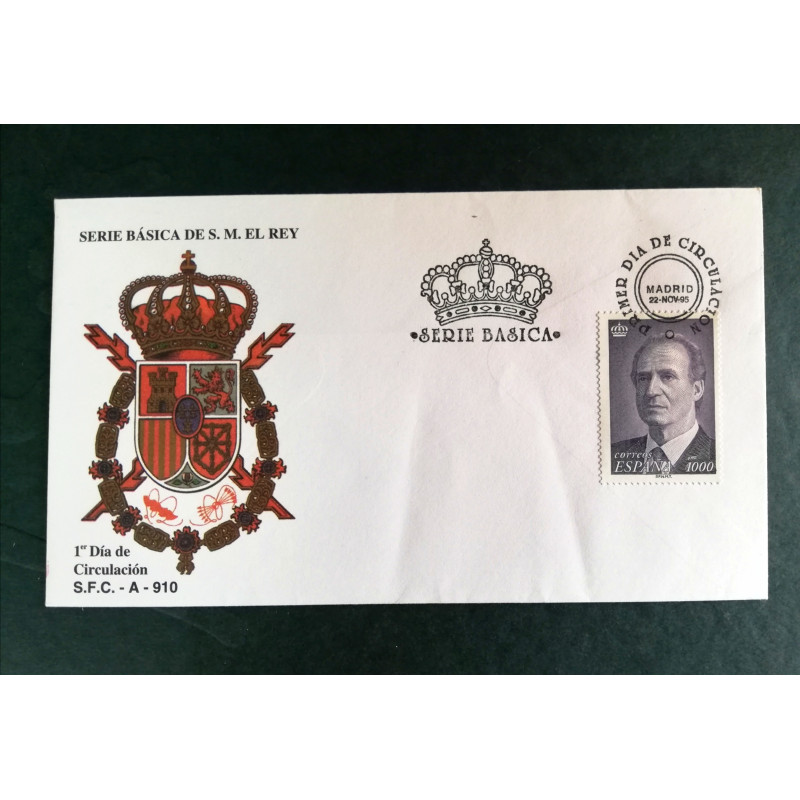 Sobre primer día de circulación del 22 de noviembre de 1995 de la basica del rey Juan Carlos I con el sello de 1.000 pesetas.