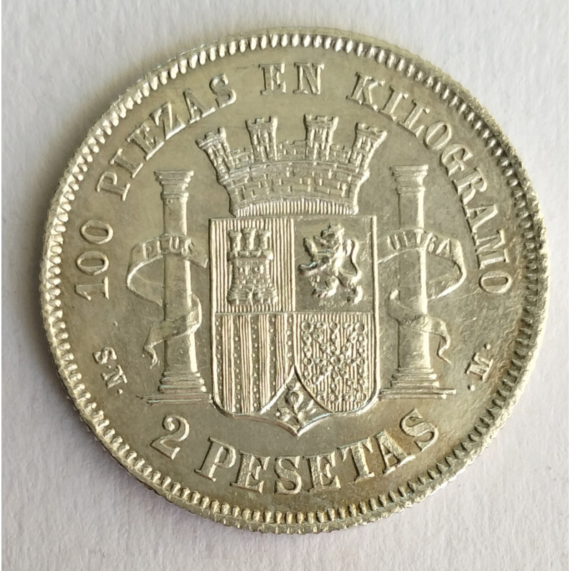 Moneda de 2 pesetas del gobierno Provisional de 1870*69 Trucada