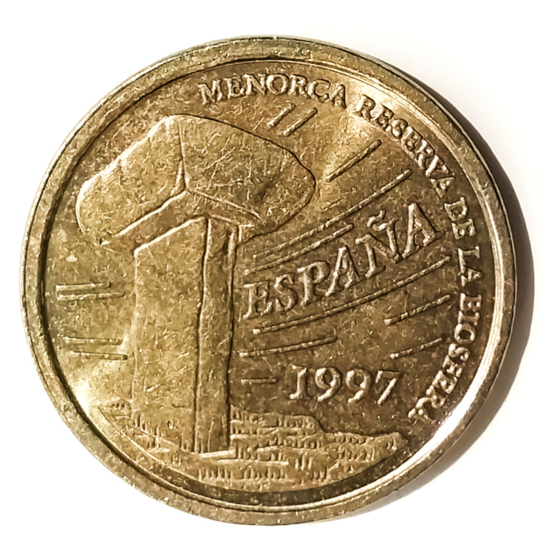 Moneda de 5 pesetas, modelo pequeño de las Islas Baleares .( Menorca reserva de la Biosfera)